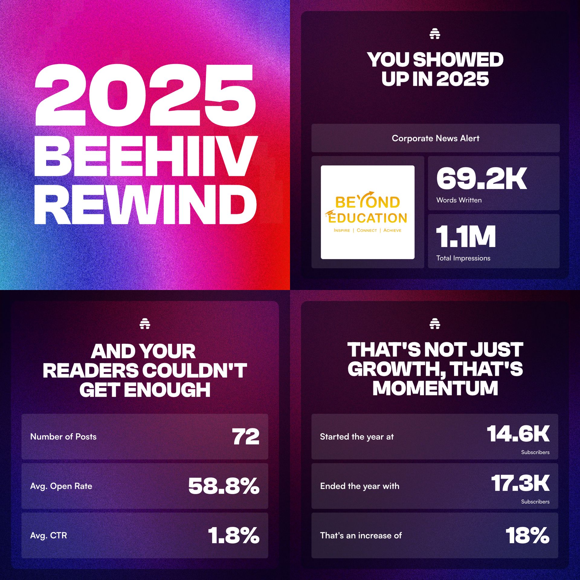I just want to say a big thank you for engaging with this newsletter, sharing it with your network and applying for j*bs through Beyond Education.